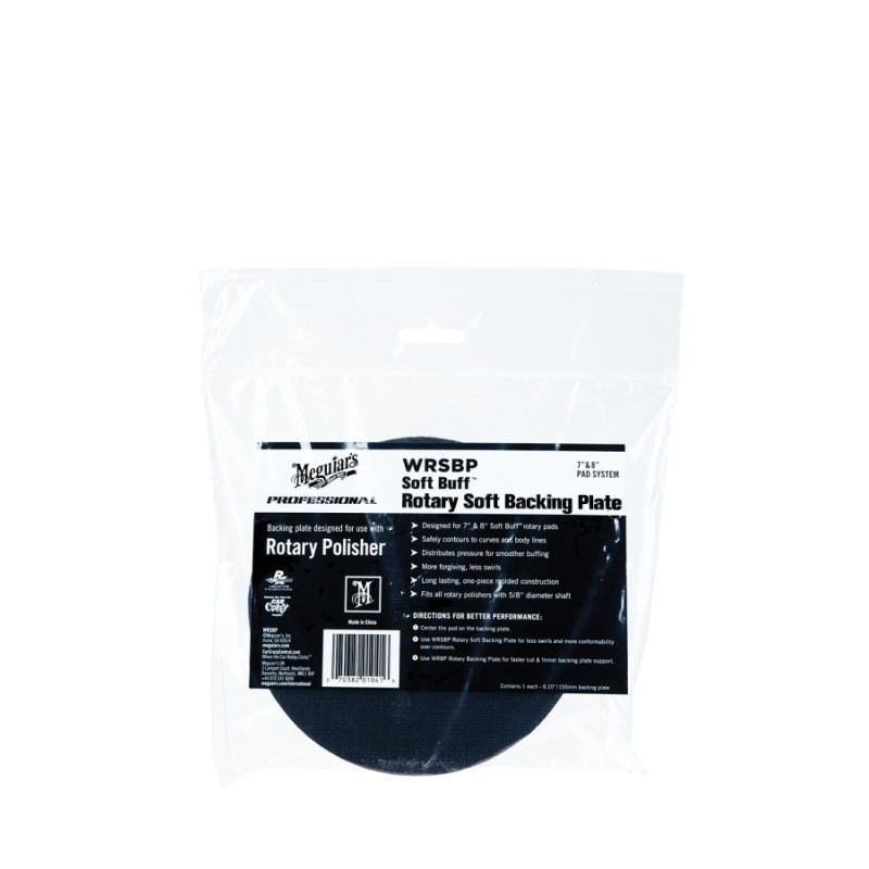 Σχεδιασμένο για 7" & 8" Soft Buff™ σφουγγάρια περιστροφικού αλοιφαδόρου. Ασφαλής προσαρμογή σε καμπύλες και περιγράμματα αμαξώματος. Κατανέμει την πίεση για πιο απαλό τρίψιμο με τον αλοιφαδόρο. Πιο ήπιο αποτέλεσμα με λιγότερα ολογράμματα. Ταιριάζει σε όλους τους περιστροφικούς αλοιφαδόρους με αξονάκι διαμέτρου 5/8". Η συσκευασία περιέχει μία βάση διαμέτρου 155mm/6.10".