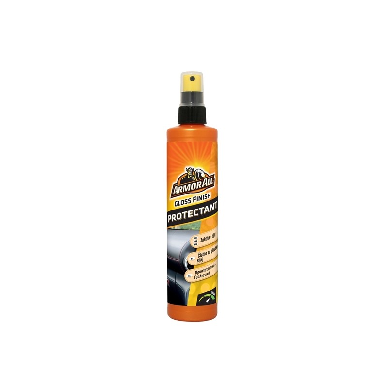 Γαλάκτωμα Protectant Gloss Finish 300ml, ARMOR ALL. Σιλικονούχο γαλάκτωμα υδατικής βάσης για πλαστικά, βινύλια, δέρματα και λάστιχα. Καθαρίζει, γυαλίζει και είναι αντιστατικό! Ταυτόχρονα διεισδύει στην επιφάνεια ρυθμίζοντας και επιβραδύνοντας τη διαδικασία γήρανσης. Ένα προϊόν για πολλές χρήσεις στο αυτοκίνητο, τη μηχανή, το σκάφος, το σπίτι ή το γραφείο.