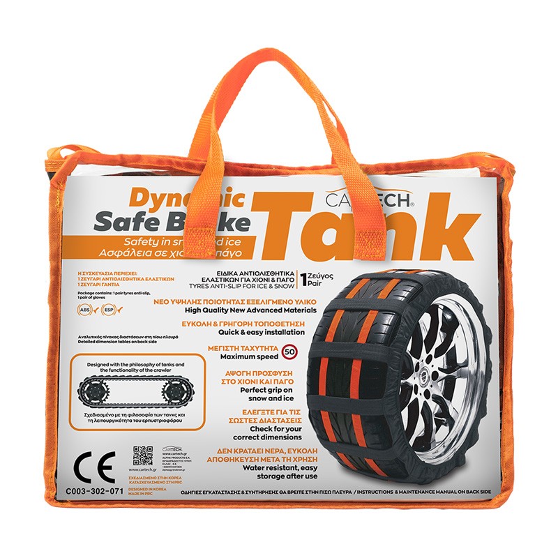 Νέο υψηλής ποιότητας εξελιγμένο υλικό. •Κορεάτικος πρωτοποριακός σχεδιασμός. •Σχεδιασμένο με τη φιλοσοφία των tanks και τη λειτουργικότητα του ερπυστριοφόρου. •Άψογη πρόσφυση σε χιόνι και πάγο. •Εύκολη και γρήγορη τοποθέτηση. •Δεν κρατάει νερά, εύκολη αποθήκευση μετά τη χρήση. •Πιστοποίηση: CE / C003-302-071