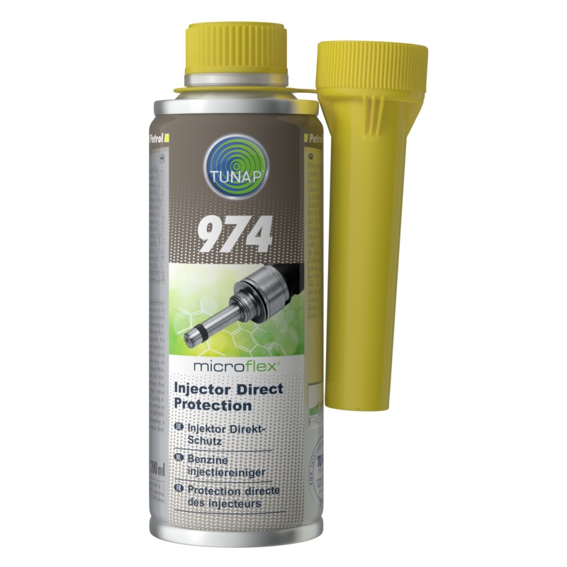 Αδειάστε το δοχείο στο ρεζερβουάρ με το παρεχόμενο ακροφύσιο. Δοσολογία: ένα δοχείο TUNAP 974 (200 ml) επαρκεί για έως και 80 λίτρα καυσίμου. Στην δεξαμενή καυσίμου του οχήματος πρέπει να υπάρχουν τουλάχιστον 10 λίτρα καυσίμου.