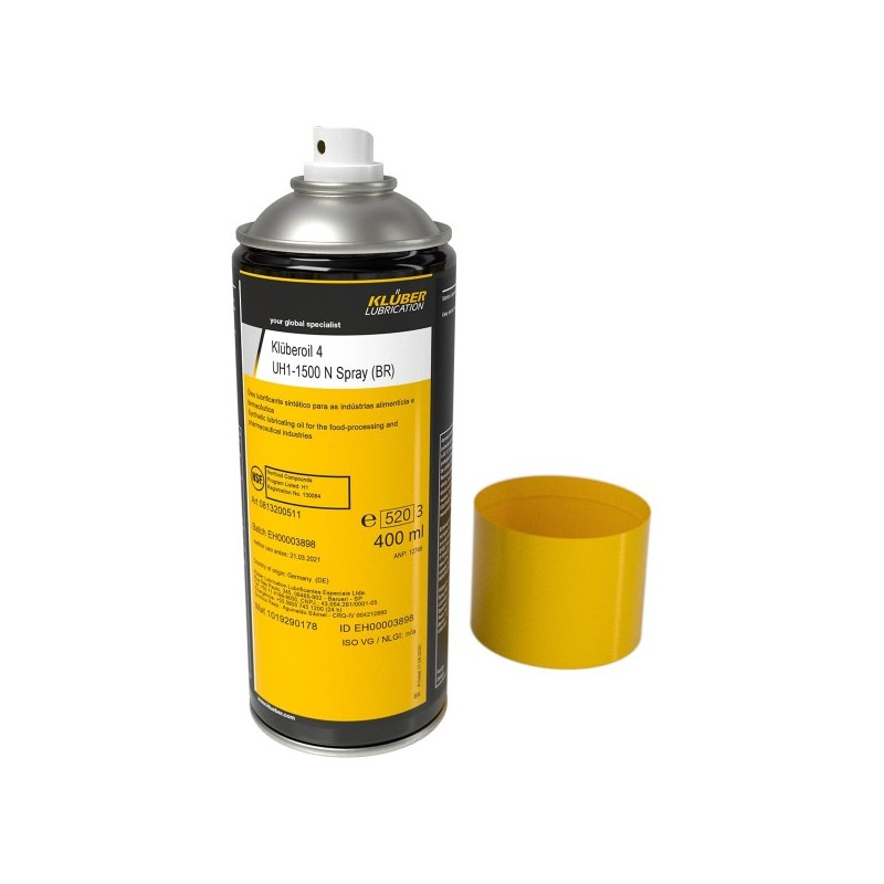Το Klüberoil 4 UH1-1500 N Spray είναι εγγεγραμμένο ως NSF H1 για χρήση στη βιομηχανία επεξεργασίας τροφίμων και τη φαρμακευτική βιομηχανία και συμμορφώνεται με το FDA 21 CFR Sec 178.3570. Αναπτύχθηκε για τυχαία επαφή με προϊόντα και υλικά συσκευασίας στις βιομηχανίες επεξεργασίας τροφίμων, καλλυντικών, φαρμακευτικών προϊόντων ή ζωοτροφών.